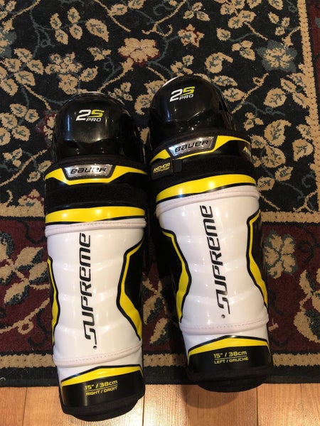 The Bauer Supreme 2S Pro shin guards combine anatomical design for a natural, close-to-the-body fit with premium protection throughout. Active Motion Protection (AMP) segmentation delivers freedom of movement, while molded PE foam in the calf and Vent Armor foam in the knee wing absorb hard impacts.