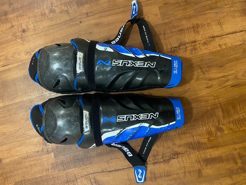 Used Bauer shin guards that still work great! There is a rip on the inner shell where they rest on the tongue of the skate.