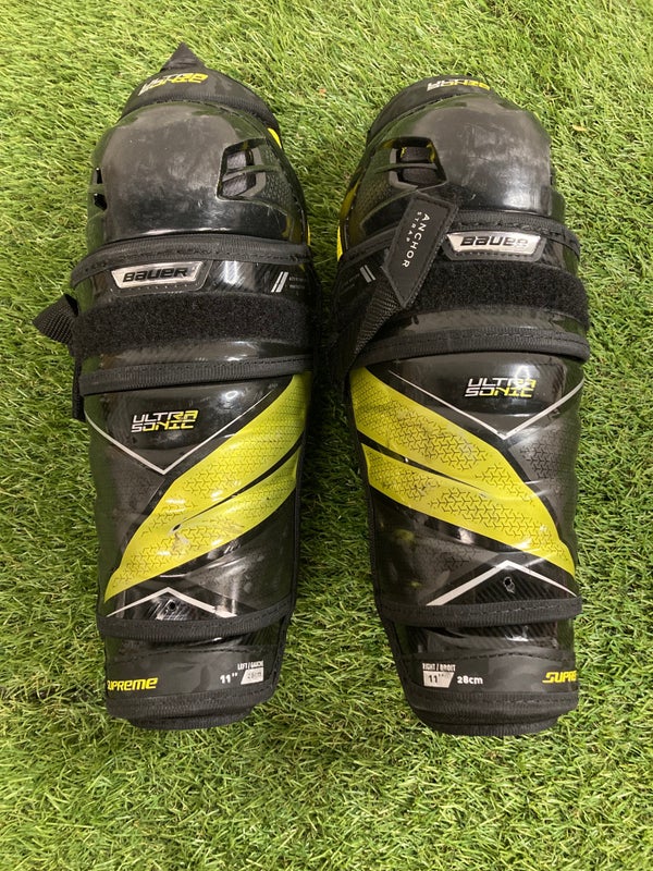 Used Junior Bauer Supreme ultrasonic Shin Pads 11"