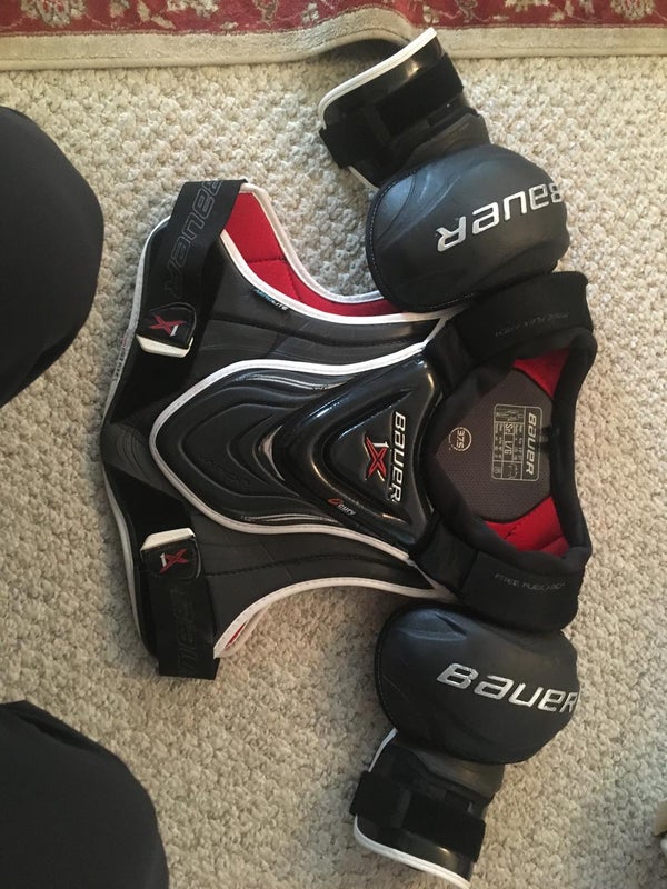 Retail price: $300.00Senior Large Bauer Vapor Hyperlite NHL Boston Bruins Pro Stock Shoulder Pads (New)