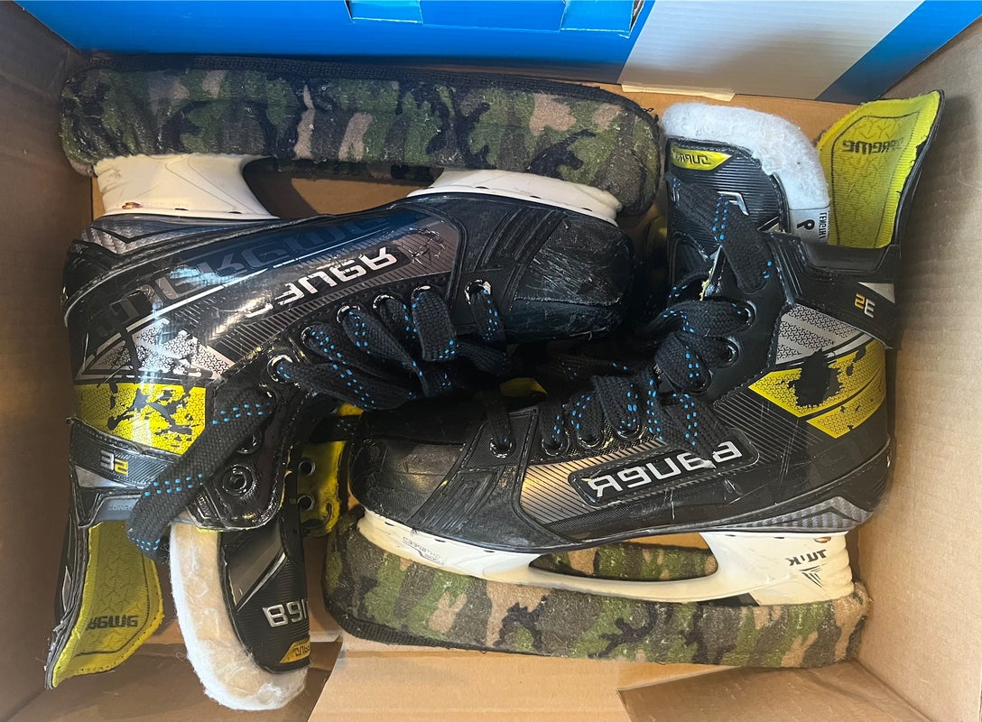 I am selling a pair of used Bauer Supreme 3S ice skates, size 6, which I purchased in 2020. These skates feature the LS3 steel, which still has plenty of life remaining for your ice sessions. The exterior decals show some wear and tear, but overall, they are in solid condition. The insides of the skates are in excellent shape—no tears or rust to be found, ensuring comfort during use. Designed with Bauer's Fit 2 system, these intermediate skates offer a snug fit while providing the performance needed for skating at various levels. If you're looking for a reliable pair of skates with plenty of life left in them, these Bauer Supreme 3S skates are worth considering.