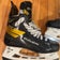 Used Senior Bauer Supreme UltraSonic Hockey Skates Regular Width Pro Stock 8.5 with shot blockers.