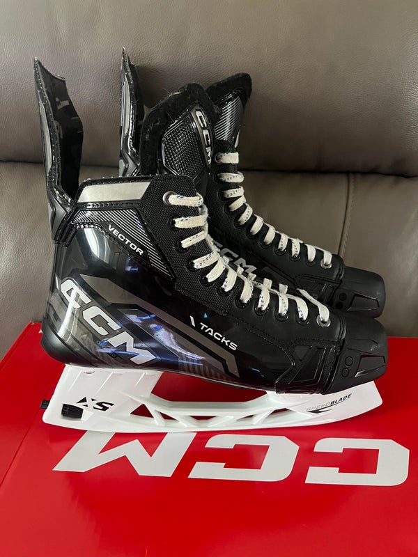 Selling a pair of CCM Tacks Vector skates, built for players who want maximum power, stability, and comfort. The Tacks line is known for its stiff, responsive boot that translates every stride straight into the ice — perfect for strong skaters, defensemen, and anyone who likes to play heavy.