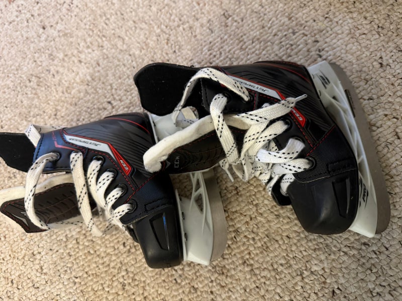 Used youth player skates in barely used, almost new condition. Worn only a handful of times with minimal signs of wear. Boots are still very stiff and supportive, with no breakdown or structural issues. Blades are in excellent shape and hold an edge well. All eyelets, holders, and laces are fully intact. Always dried after use and stored indoors.