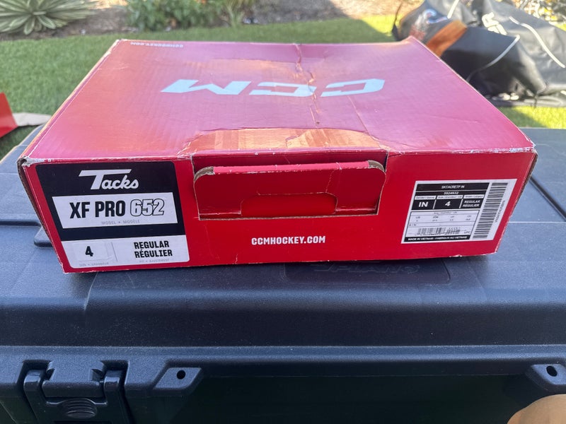 Black/White 2024 CCM Tacks XF Pro Hockey Skates Regular Width Size 4 (Used)
