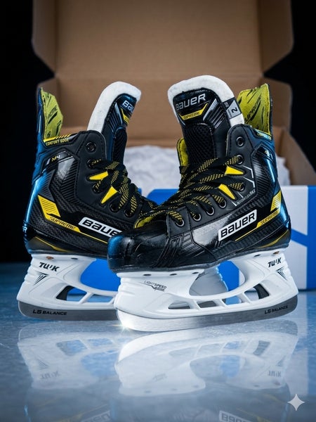 Black/Yellow 2022 Bauer Supreme M4 Hockey Skates Extra Wide Width Size 2 (Barely Used)