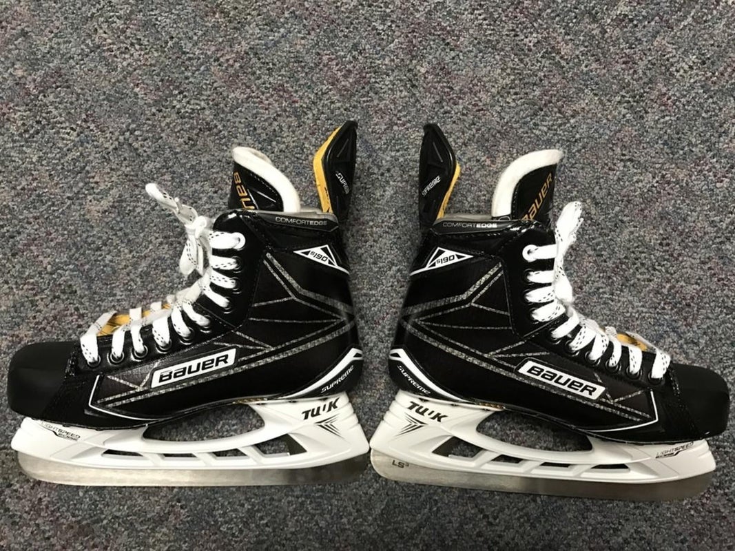 The Bauer Supreme skate utilizes a stiffer composite material to maximize energy transfer with every stride, while the upper section offers increased flexibility for enhanced mobility. The Digi Composite quarter package and outsole provide exceptional support and thermoformability, allowing the skate to mold to your foot for a customized fit.