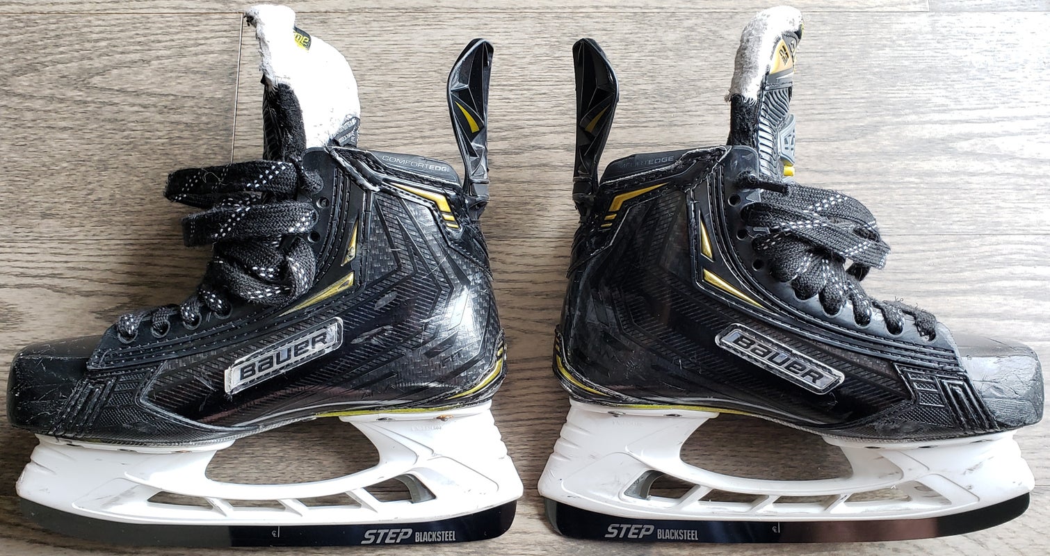 Junior Used Bauer Supreme 2S Pro Size 4 D Hockey Skates with STEP Black Steel blades and SUPERFeet