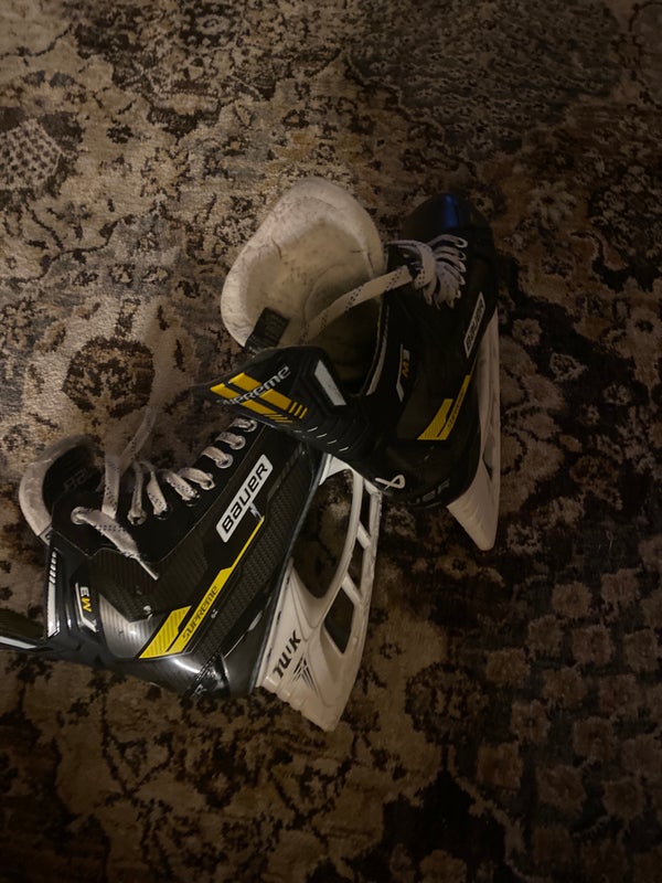 Retail price: $1,500.00Black/Yellow 2022 Bauer Supreme M5 Pro Hockey Skates Regular Width 8.5 (Used)