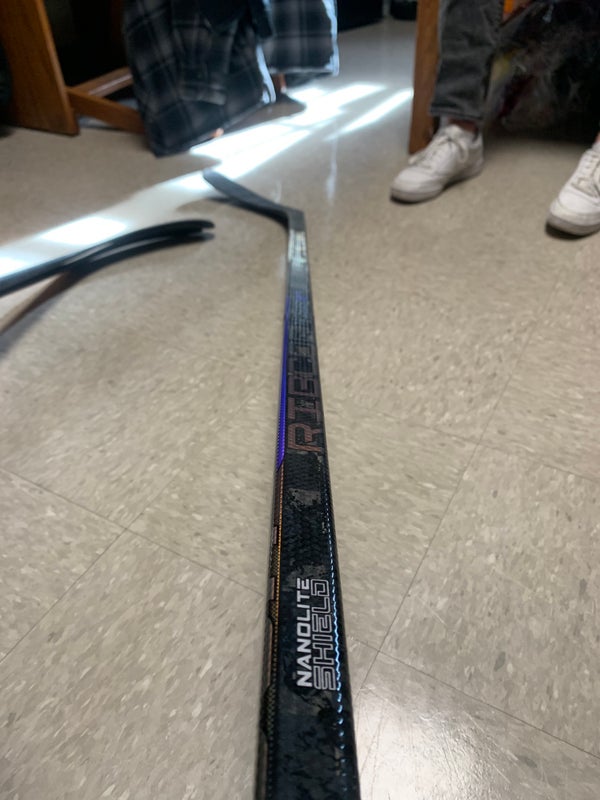 The CCM Ribcor Trigger 9 Pro is a pro stock left-hand hockey stick, designed for players looking to enhance their shooting and puck control. Featuring a 75 flex, it offers a balance between whip and stability, allowing for accurate shots with a quick release. The P90T pattern is well-regarded for its versatility, offering a smooth curve that benefits both puck handling and passing. The Ribcor line is known for its unique low kick point, which helps generate fast shot releases, particularly useful for players who take quick wrist shots. This stick is ideal for senior players who have a well-established skill set and are looking to maximize performance on the ice. It suits aggressive forwards and skilled players who thrive on quick plays and need to react instantly. Although this stick is used, it is in good condition and ready to deliver performance on the rink.