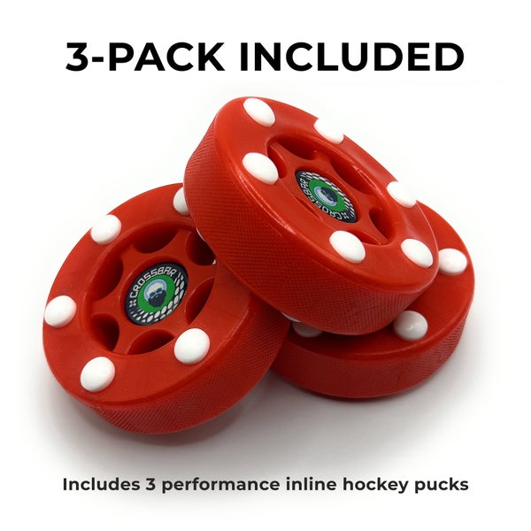 Crossbar Red Roller Hockey Pucks – 3 Pack (New)