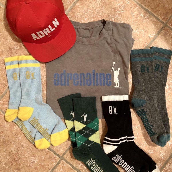 Combo pack of adrenaline socks, a “dry fit” sort of shirt size large adult, and a hat. Enjoy