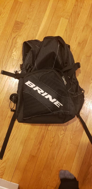 Brine Grey and Black Lacrosse Backpack with stick and water bottle holder (Used)