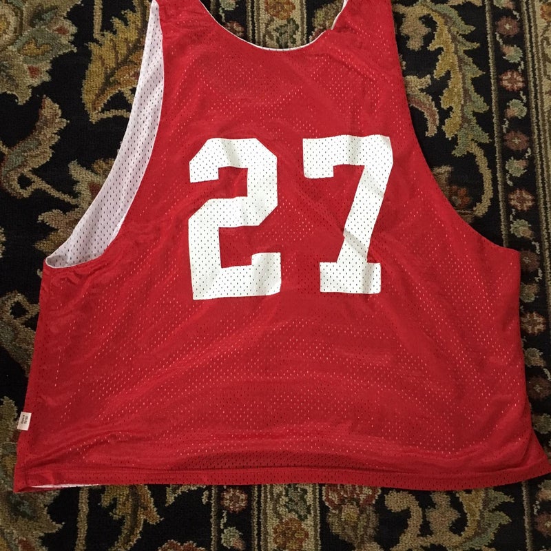 Red/ white reversible pinnie Size: large
