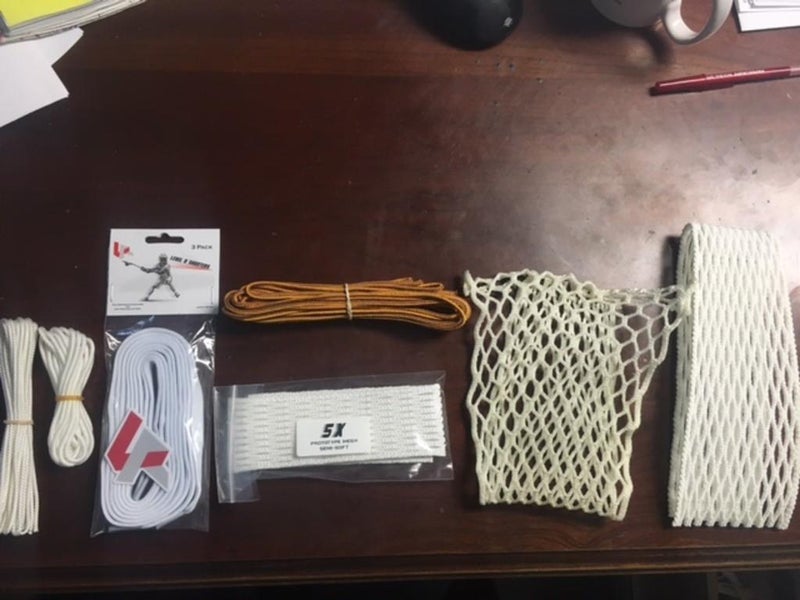 Laxroom Level 8 Shooters (new) - Laxroom Prototype 5x Semi-Soft Mesh (new) - Bootlace (10 yards) (new) - Nylons (new) - Barely used wax mesh - New misc hard mesh -