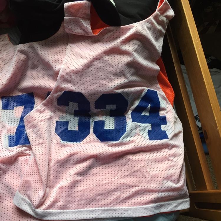 5 pinnies. The numbered ones are L/XL and the other two are s/m