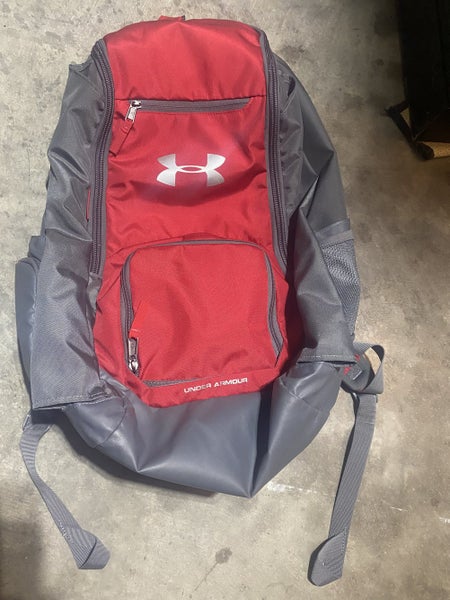 Like new large lacrosse backpack by Under Armour. Bag will fit helmet, shoulder pads, elbow pads, gloves, jerseys, and extras in main compartment with ease. Side pockets hold water bottle, cell phone, accessories etc. 2 Stick Sleeves on the sides. Great bag in great condition!