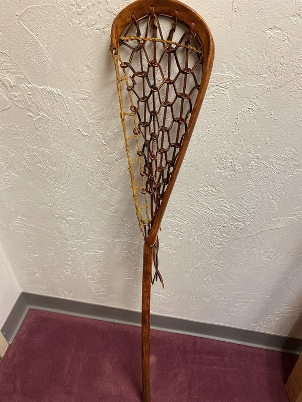 46 inches long.... perfect for collector or true lacrosse person that respects the origins of the game plus second box woody