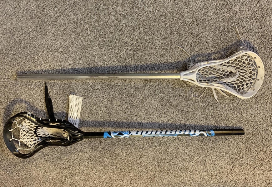 Lot of 2 Warrior mini sticks. Razer and Cobra. Both are pre-owned and show some scoopies and tape residue on the shafts, along with some scuffs and scratches. No but ends. Please reference photos for condition.
