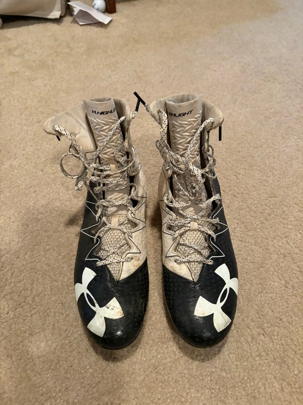 White and black Men's Size 13.0 (W 14.0) Adult Under Armour High Top Molded Cleats (Used)