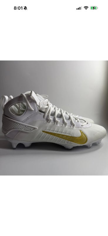 Nike Men’s Size 13 Huarache 9 Elite Mid LAX Lacrosse Cleats White/Gold FD0088-100 NEW