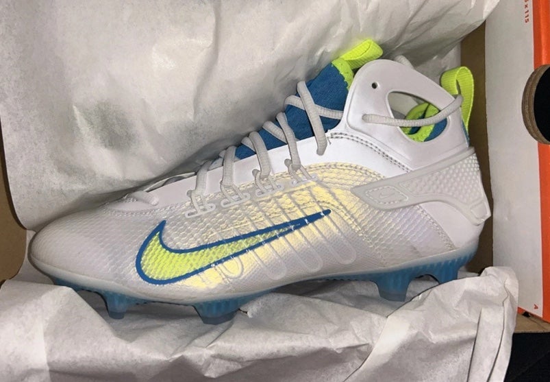 Nike White blue neon yellow Unisex Size M 9 (W 10) Adult mid Top Cleats Huarache New in box