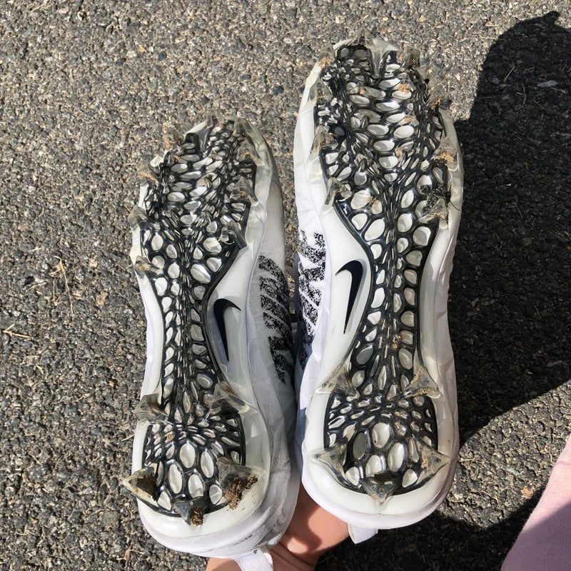 Retail price: $3.00White Adult Used Men's Size Men's 10.5 (W 11.5) Molded Cleats Nike Mid Top Alpha Huarache 8 Elite