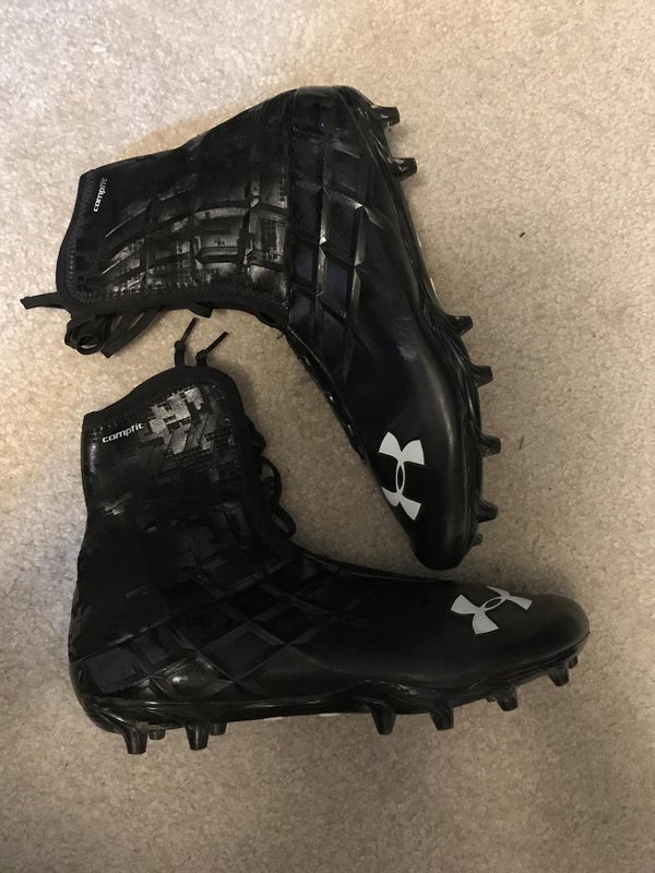 New Under Armour UA Highlight MC Size 10.5 High Top Football Cleats Black/Gray