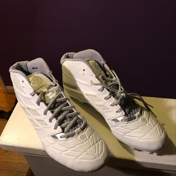 Retail price: $100.00White Men's Size M 11.5 (W 12.5) Adult New Balance Mid Top Burn X4 Turf Cleats (Used)