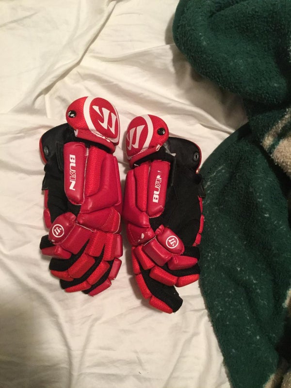 The Warrior Burn Lacrosse Gloves feature a low-profile design and flexible cut for comfort. The Pro Palm with mesh inserts ensures ventilation, while the Truvent system enhances cooling. Mesh gussets provide additional airflow, and the inset cuff design offers added protection. These gloves are a great choice for players wanting reliable protection and comfort.