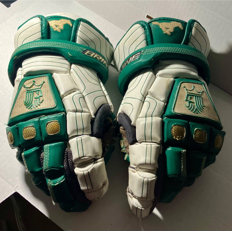 Custom Brine king men’s Lacrosse Gloves 13" (Used) mustang logo green and white