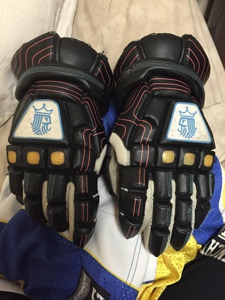 The Brine King Lacrosse Gloves are designed for serious players, offering comfort, protection, and flexibility. They allow for unrestricted wrist movement and have an exceptional grip. The Patent Pending Arch-Tech backhand provides added protection, flexibility, and venting while absorbing impacts.