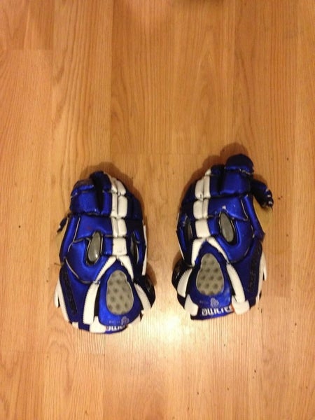 blue/white used Maverick gloves. Still in pretty good condition. haven't been used/been in storage for past 3 years