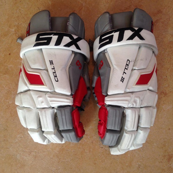 Used for one season. Embroidered Harvard "H" and "3". Hole in left palm and both thumbs.