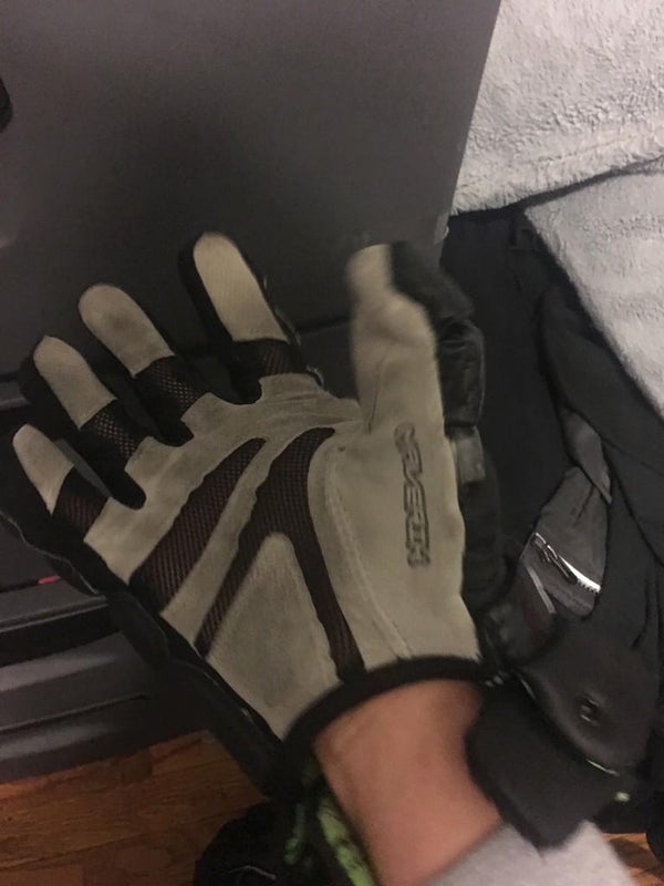 slightly scuffed logo on left glove no rips only warn in practice