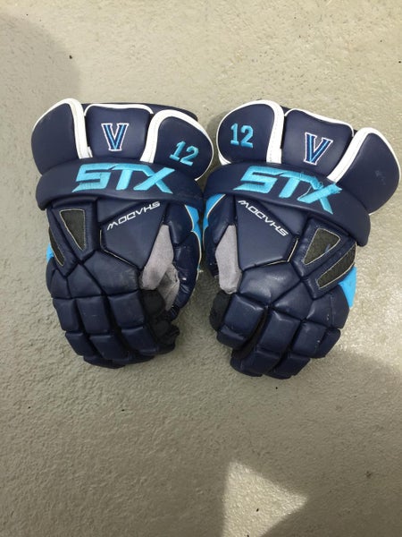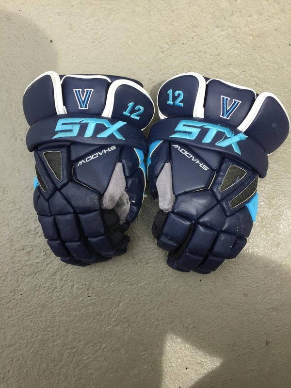 STX Shadow Gloves, Villanova team issued. Heavy usage, rips in the palms and thumbs.