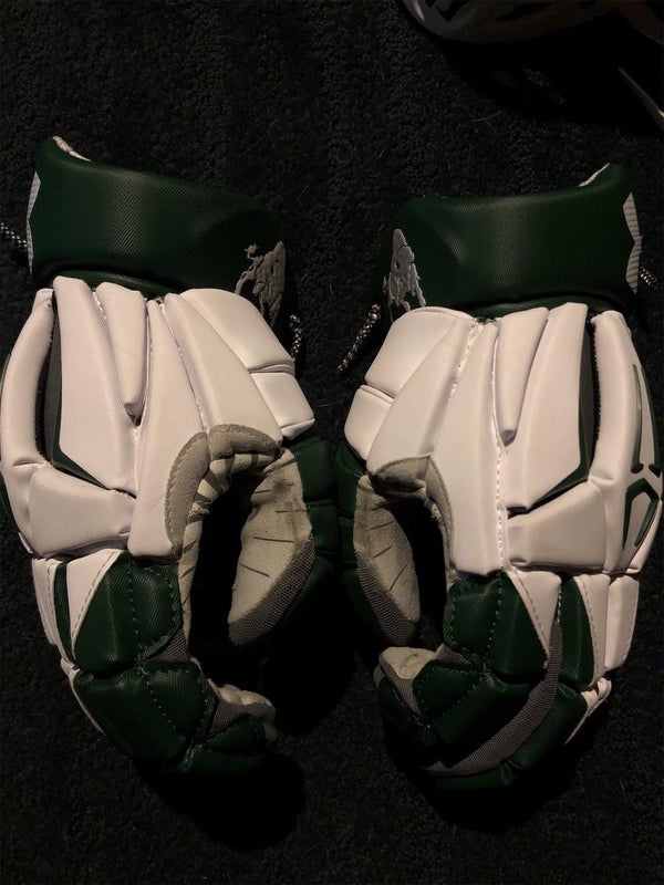 The Under Armour Command Lacrosse Gloves offer a comfortable and secure fit with their new ergonomic base and flared flex cuff. The molded inner cuff provides flexible protection, while the AX Suede palm ensures durability and optimal stick control. Hard plastic inserts in key impact zones offer additional protection, making the Command gloves a reliable choice for serious lacrosse players seeking a balance of comfort, protection, and performance.