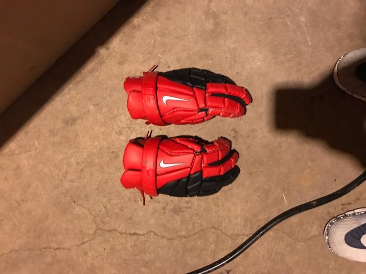 Custom red and black Nike Vapor 2 Gloves. Part of team issued gear for top D3 program Ohio Wesleyan, have logo and #23 stitched into cuffs. Sticky Nike logo has worn off but no damage to gloves. I hated these and felt the palms were slick so they're barely worn