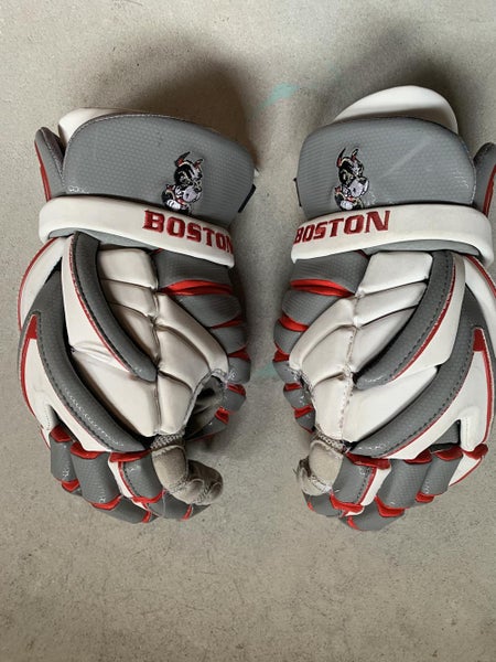 Custom Boston University Evo gloves. Worn but in good condition with no rips. Cuffs still attached