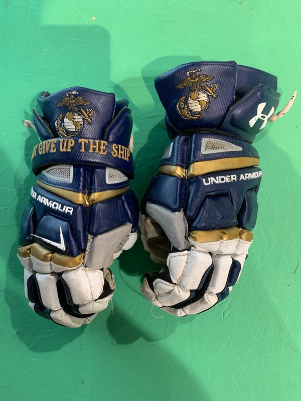 Used Under Armour Navy Midshipmen Lacrosse Gloves Large