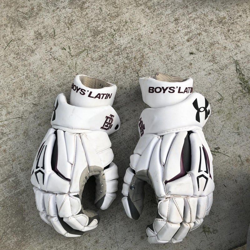Used for half a season. Great condition varsity lacrosse boys latin gloves.