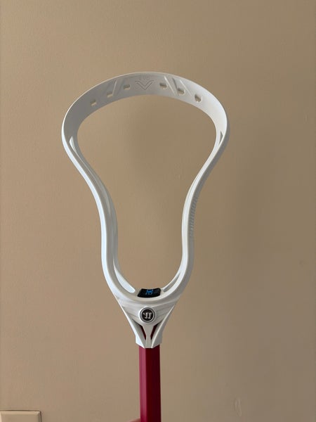 The Warrior Evo 5 was the head of choice by players such as UVA attackman Xander Dickson. It's made to be light and accurate with a ton of ball control. It's got a lot of sidewall holes that would allow for multiple sidewall patterns, so you have a ton of different stringing options. Some players like to do a high pocket with a little bit more whip, and some like a mid to low pocket for less whip and more control. This head is for players who'd like to have the ball lower in the pocket, but it's also versatile in what you can do with it.