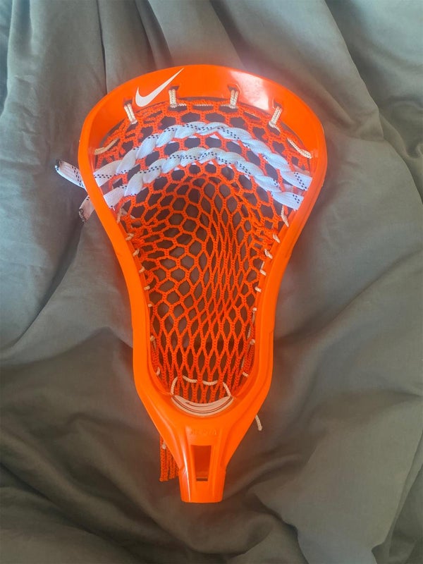 Brand new orange Nike Alpha lacrosse head. I took the tags off when I strung it. It has never been played with or put on a shaft.