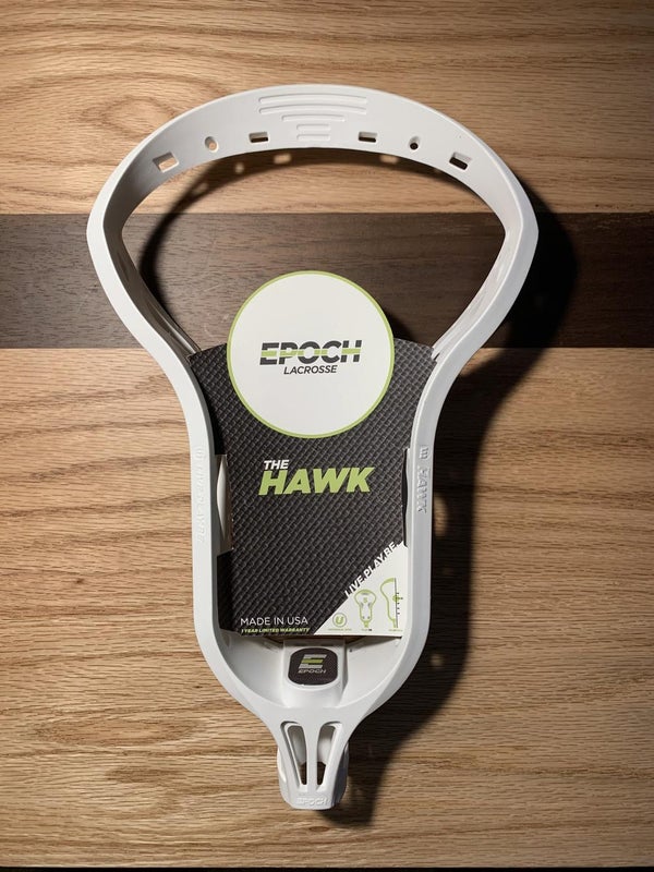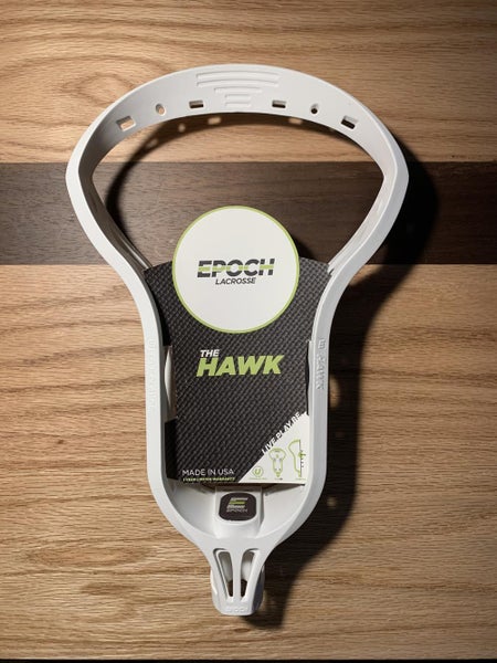This Epoch Hawk Lacrosse head is brand new and has never been used. It will be shipped with its original information card. The head was originally distributed by Epoch to Southern Pride Lacrosse, a member of Epoch's first testing crew, the 382 Crew. The head has been kept in mint condition since its original shipping.
