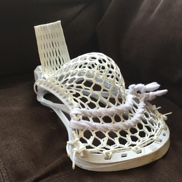 Scratches on the scoop and ball marks on the inside. Otherwise it is in perfect shape. Pictures are of actual head but not mesh or strings. Will sell unstrung but no price change. NO TRADES