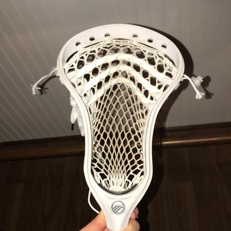 Slightly used white maverick optik u, with stringking type s mesh. Great condition for a great price. Great stringing for the attack position. Smooth release