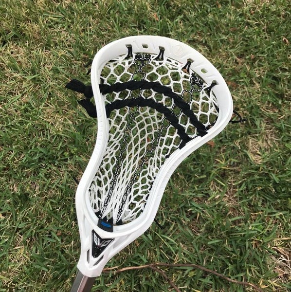 The Warrior Evo 5 was the head of choice by players such as UVA attackman Xander Dickson. It's made to be light and accurate with a ton of ball control. It's got a lot of sidewall holes that would allow for multiple sidewall patterns, so you have a ton of different stringing options. Some players like to do a high pocket with a little bit more whip, and some like a mid to low pocket for less whip and more control. This head is for players who'd like to have the ball lower in the pocket, but it's also versatile in what you can do with it.