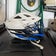 Has blue jaw piece with black accents and a chrome blue face mask. Was worn one season and almost like new.