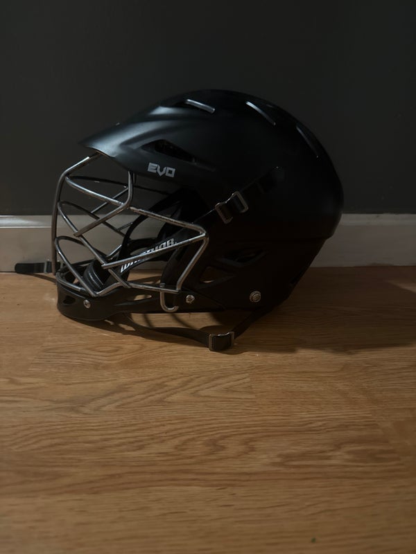 Black Evo next helmet worn one or two times for indoor practice, but is basically a brand new helmet have all the extra padding that comes with the original helmet just do not have the box