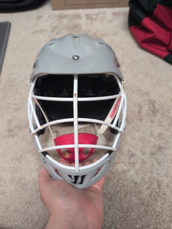 L/XL Warrior Evo Helmet. Nocsae certified, but this helmet should only be used in practice/off-season play as it has been longer than 3 years since purchase, and Warrior helmets cannot be recertified. There are a couple of rust spots on the facemask and chin strap clasps. Outside of that, the helmet was only worn for a single season and is in relatively good condition.